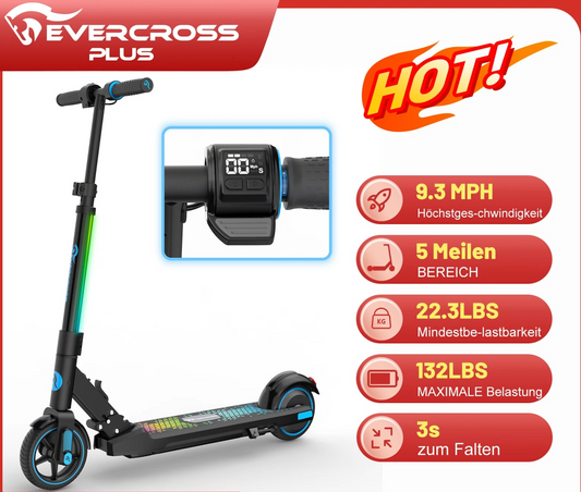 EV06C Electric Scooter – 6.5" Foldable E-Scooter, Upto 15KM/H, LED Display, Colourful Lights, Perfect for Kids, EVERCROSS PRO